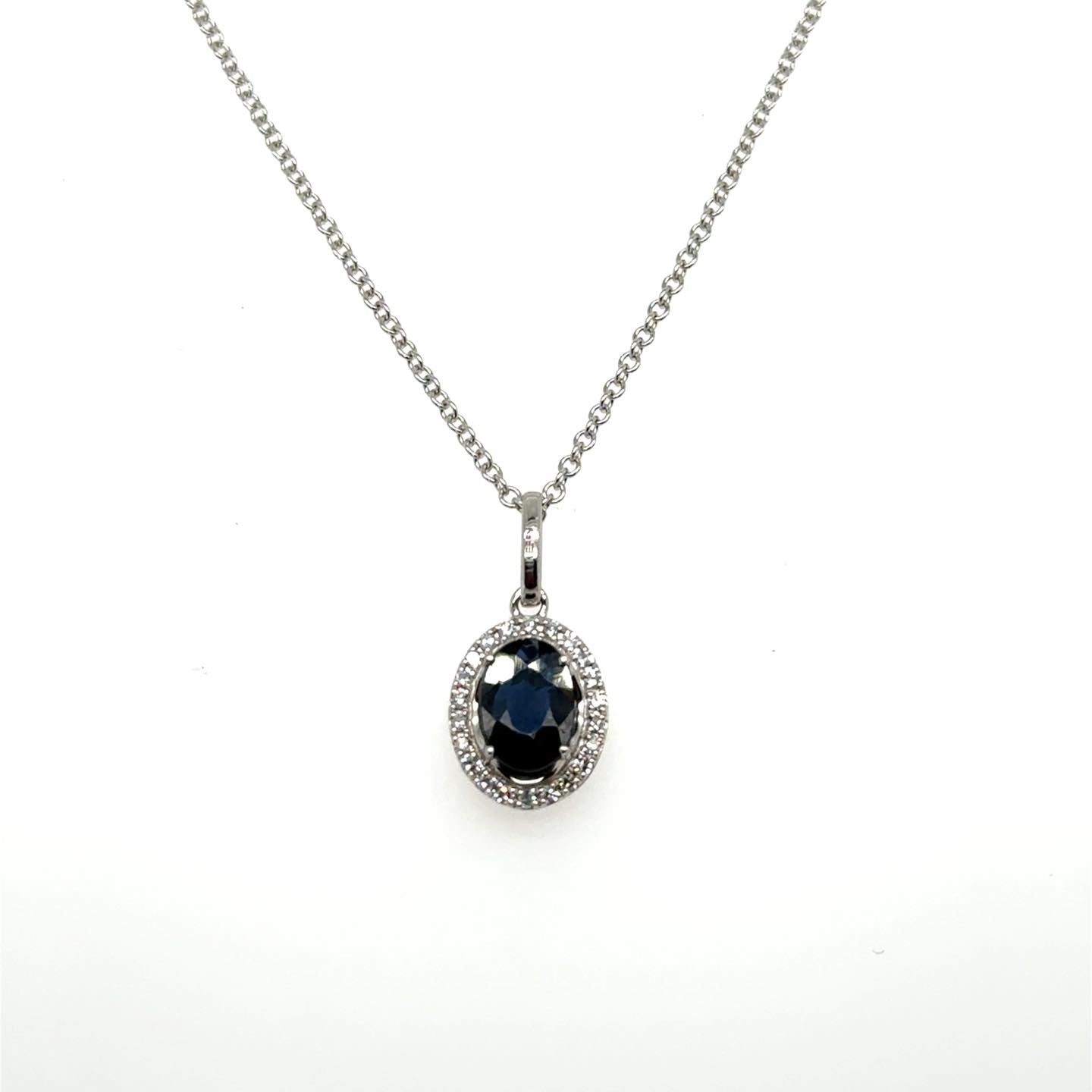 .08ctw Diamond and Sapphire 14kt White Gold Pendant with Chain